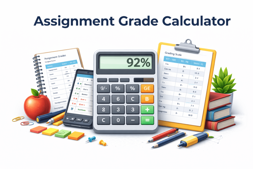 An assignment grade calculator helps students calculate the grade they earned on homework, quizzes, tests, or projects. It converts the score and total points into a percentage grade and often shows the corresponding letter grade.