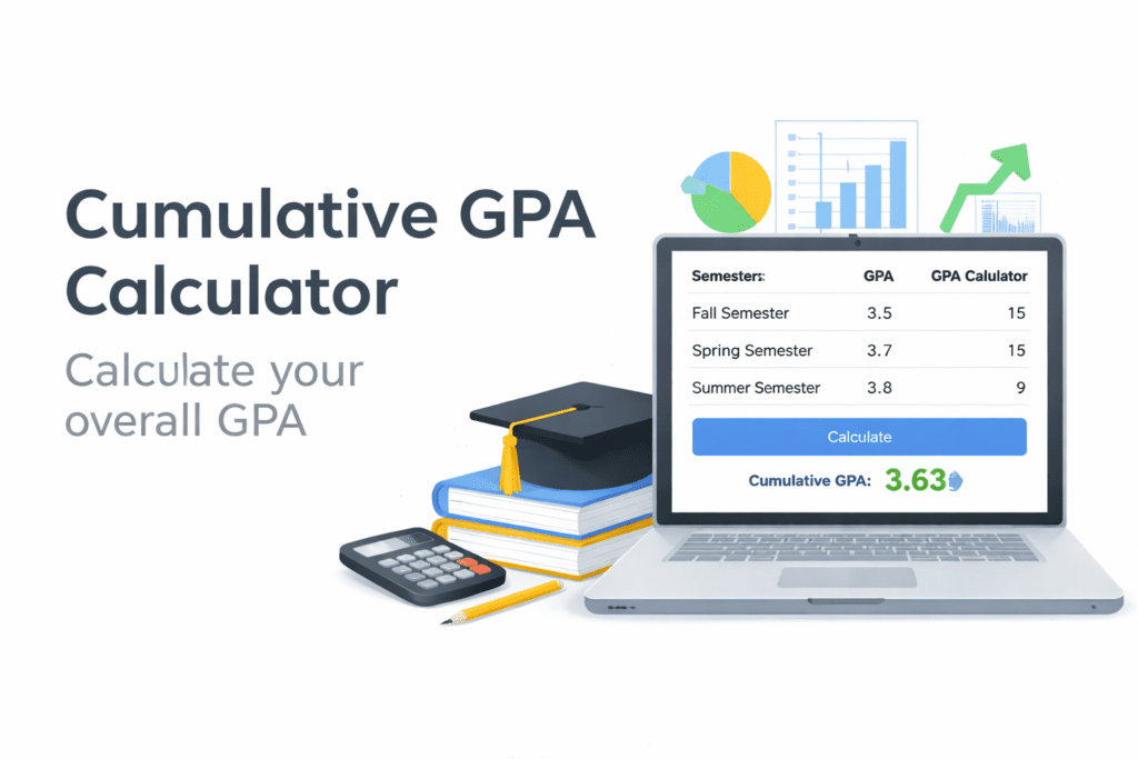 A cumulative GPA calculator helps students calculate their overall grade point average across multiple semesters or academic terms. Instead of calculating grades manually, this tool combines course grades, credit hours, and previous GPA results to determine the current cumulative GPA.