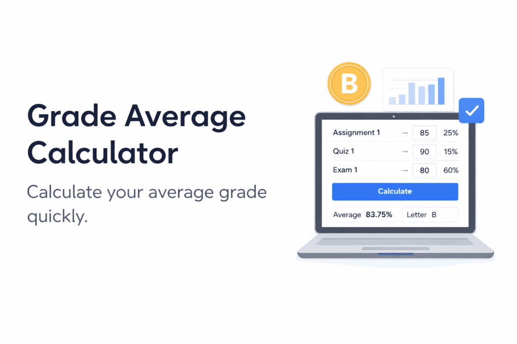 A grade average calculator helps students determine the average grade across multiple assignments, quizzes, tests, or exams. Instead of manually performing grading calculations, this calculator quickly computes the average using numerical values or weighted grades.