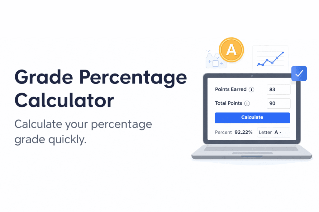 A grade percentage calculator helps students determine the percentage score for a test, assignment, or exam based on the points earned compared with the total points possible. Instead of performing manual math, this calculator quickly computes the percentage grade and converts it into a letter grade using a standard grading scale.