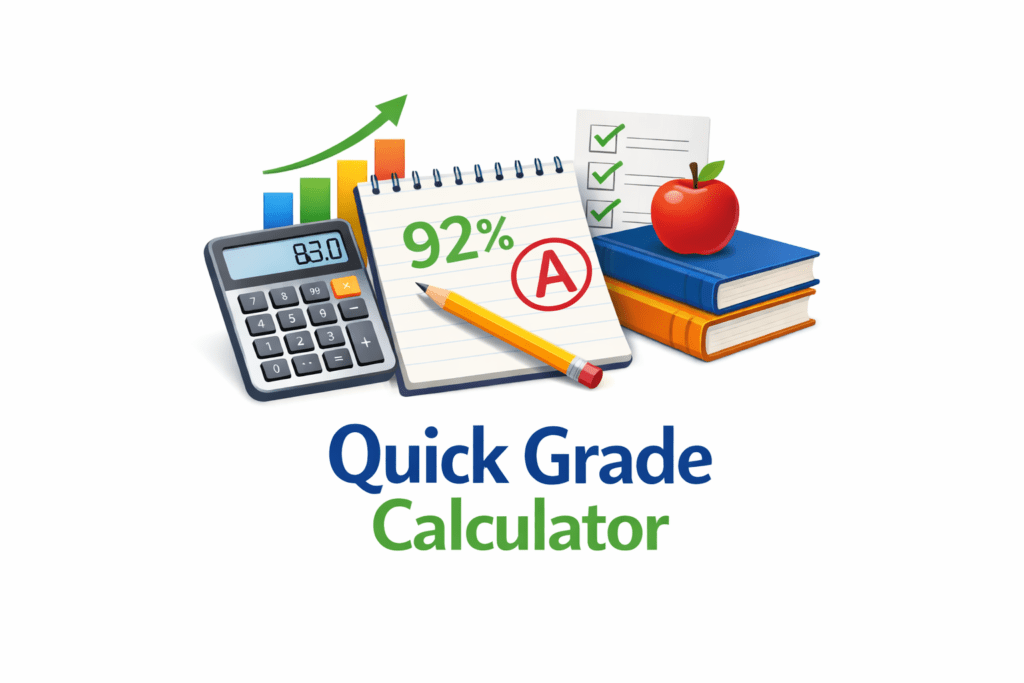 A Quick Grade Calculator helps students and teachers quickly calculate test grades, quiz scores, or assignment grades based on the number of correct answers and total questions. This grade calculator converts scores into percentage grades and letter grades, making it an easy-to-use tool for fast grade calculation in classrooms or schools.