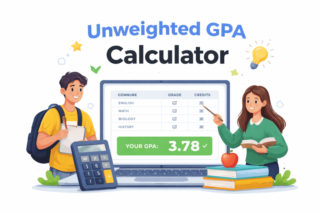An unweighted GPA calculator helps students calculate their grade point average using the standard 4.0 scale. It treats every course equally and does not add extra points for advanced classes like AP, IB, or honors courses.
